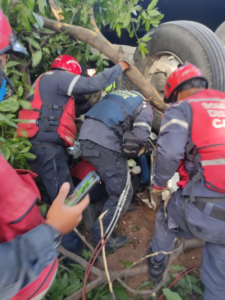 Este sábado a las 8:00 de la mañana, el conductor de un camión (sin carga) perdió el control del mismo en la autopista Valle Coche a la altura de los estadios, en dirección a Coche, cayendo al vacío, reportó la periodista Nathalí Vidal hace minutos.