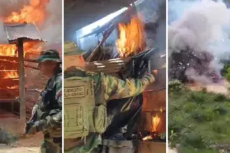 Militares venezolanos destruyeron ocho campamentos de supuestos narcotraficantes colombianos y quemó 470 kilogramos de cocaína en el estado…