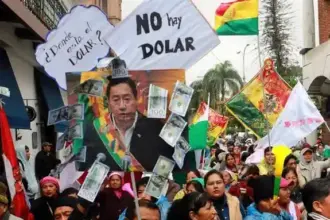 Con camiones y barricadas, transportistas de carga internacional y comerciantes bloquearon el lunes varias vías que conectan Bolivia…