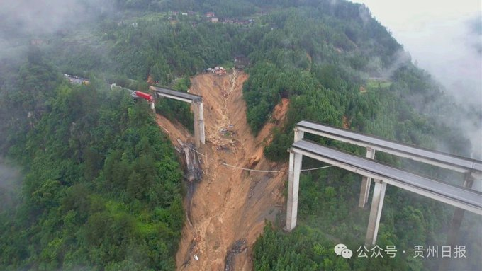El colapso del puente y el deslizamiento de tierra son resultado de las lluvias torrenciales que han provocado graves inundaciones en la provincia de Guizhou, una región conocida por su terreno geológicamente inestable.
