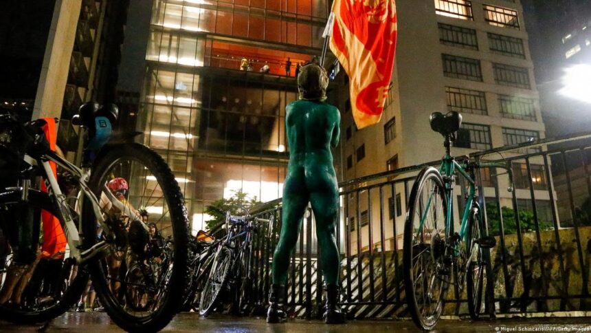 En la madrugada, en la Avenida Paulista, la arteria más emblemática de la capital económica de Brasil, la mayoría de los ciclistas se encontraban desnudos, pero algunos prefirieron pedalear en tanga o ropa interior.