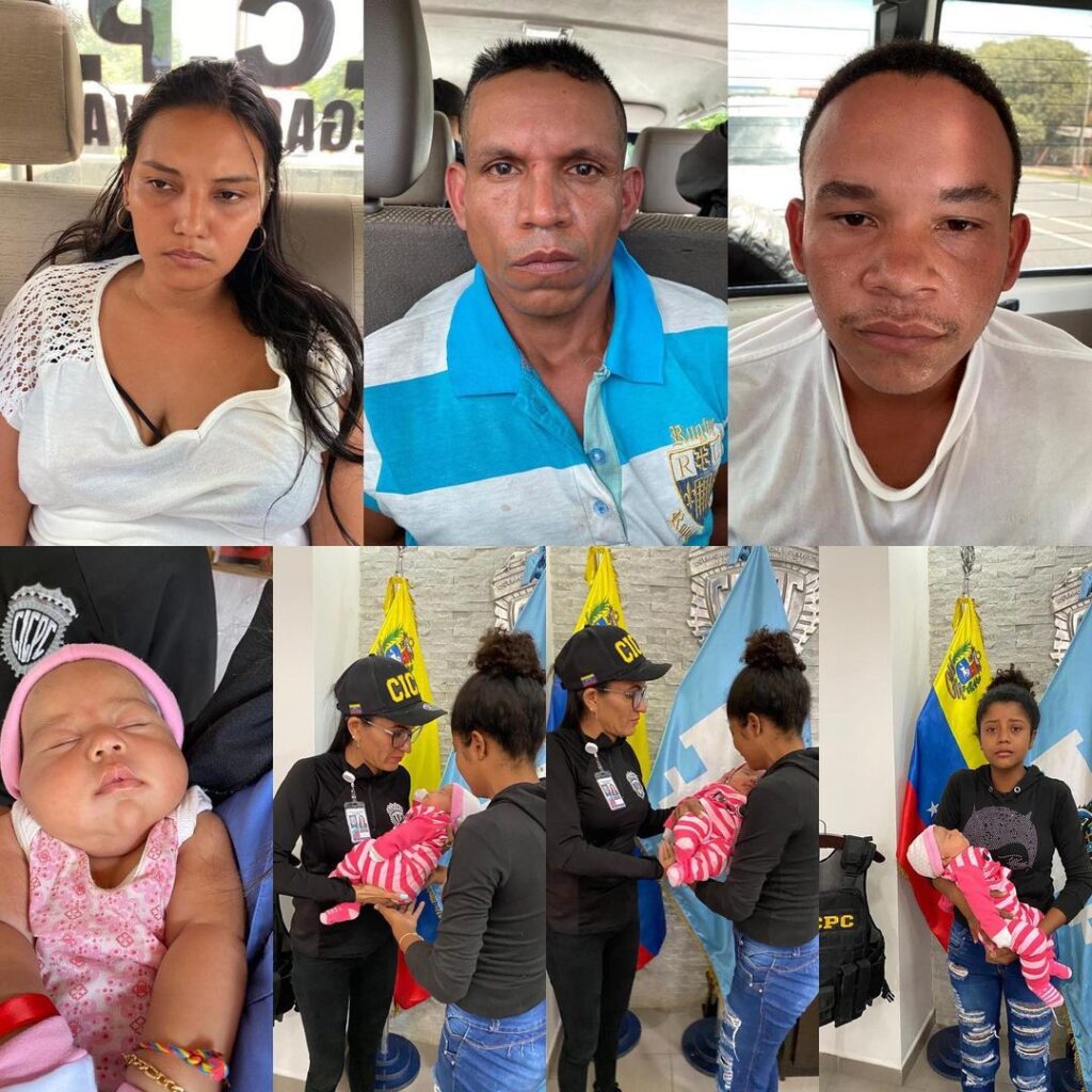 Funcionarios del Cuerpo de Investigaciones Científicas, Penales y Criminalísticas (CICPC) rescataron, este sábado, a la bebé que fue raptada en el sector Samán Mocho, municipio Los Guayos, estado Carabobo.