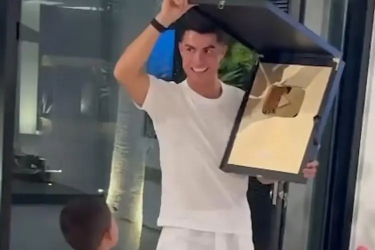 Cristiano Ronaldo recibe placa de un millón de suscriptores a solo horas de abrir su canal de YouTube