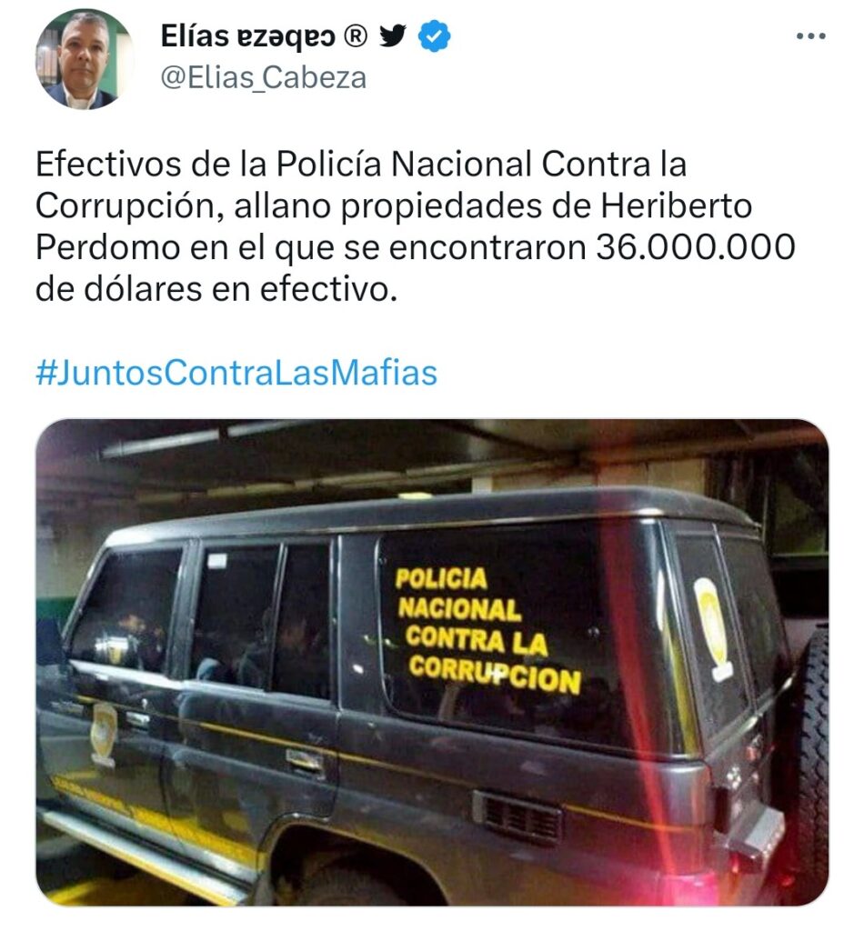 Unas cuantas horas antes se supo de forma extraoficial, en redes sociales, de la aprehensión de quien se dice es uno de sus hermanos y dueño de la Ferrari, ubicada en la Torre Jalisco de Las Mercedes: Heriberto Perdomo. Cuando a este le fue allanada su casa supuestamente Las autoridades hallaron unos 36 millones de dólares en efectivo.