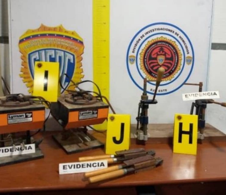 Al momento de la aprehensión, tenían dentro de la vivienda tres pistolas y un revólver de diferentes marcas, modelos y calibres; mil 466 municiones, 103 cápsulas fulminantes, dos máquinas fundidoras de plomo para proyectil, dos prensas recargadoras de municiones y dos moldes para elaborar municiones.