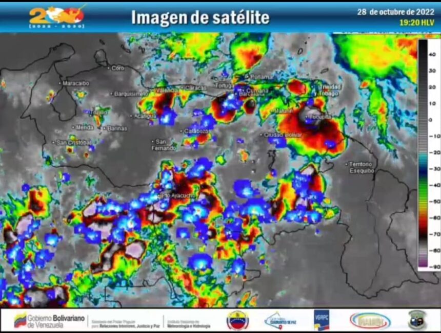 El Inameh informó, la noche de este viernes, que observa nubosidad convectiva productora de lluvias o chubascos, algunos con descargas eléctricas (destellos azules), en áreas de Apure, Carabobo, Aragua, Distrito Capital, La Guaira, Miranda, Guárico, Anzoátegui, Monagas, Sucre, Delta Amacuro, Amazonas, Bolívar, zona Insular (Los Roques, La Orchila, La Tortuga, Isla de Margarita y La Blanquilla).