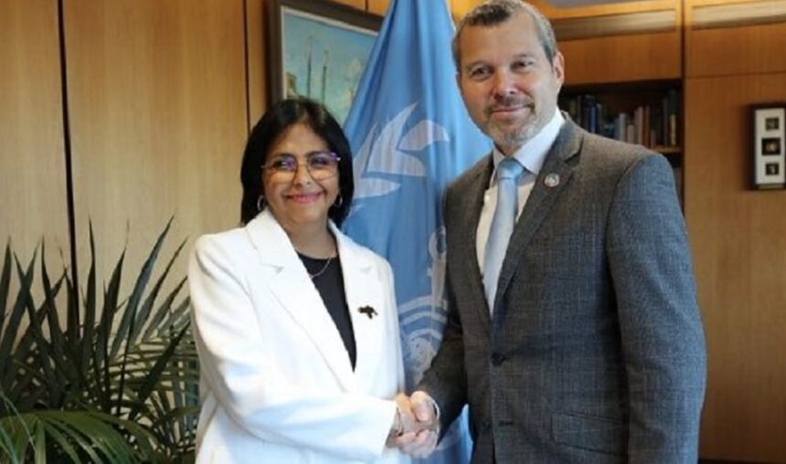 La vicepresidenta ejecutiva Delcy Rodríguez sostuvo este jueves un encuentro con el secretario general de la Organización Marítima Internacional (OMI), Arsenio Domínguez, en Londres, en el que denunció el bloqueo de 69 buques relacionados con el país debido a las sanciones económicas.