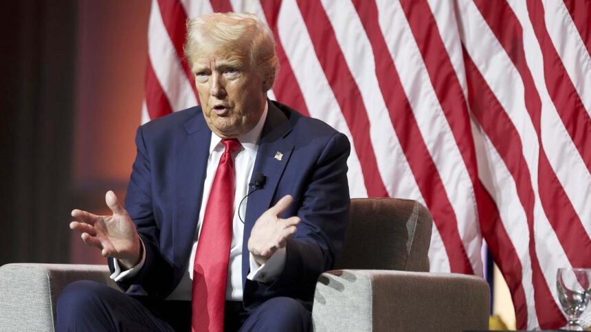 Former President Donald Trump participates in a Q&A at the National Association of Black Journalists Annual Convention and Career Fair at Hilton Chicago in the Loop on July 31, 2024. (Eileen T. Meslar/Chicago Tribune)