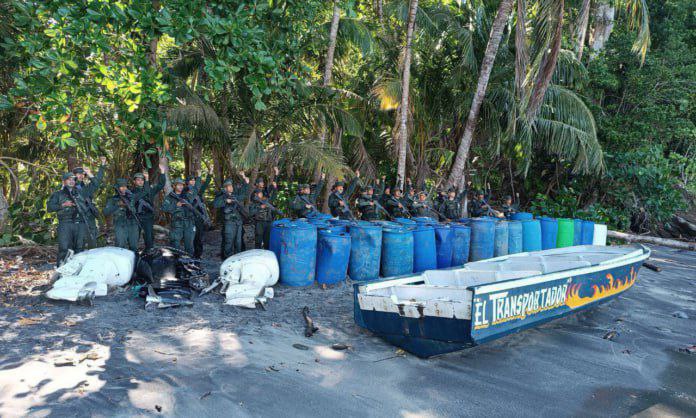 La embarcación fue reconocida como “El Transportador”, en la que se consiguieron “tres motores Suzuki de 300 caballos de fuerza, diferentes partes y repuestos de motores que sumaban 75 caballos de fuerza y 51 tambores con 200 litros de gasolina cada uno, para un total de 10.200 litros del combustible”.