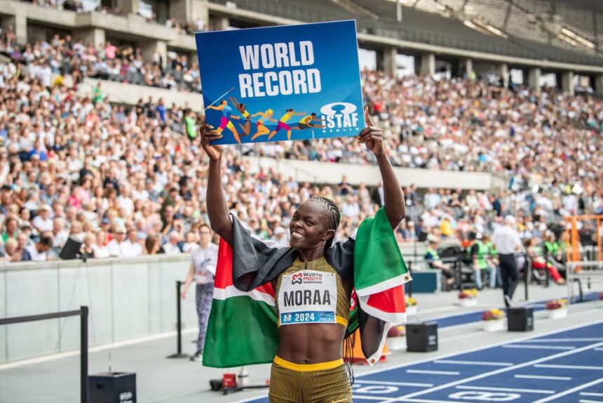 La corredora keniana Mary Moraa registró el récord del mundo de los 600 metros planos durante la reunión atlética Istaf Berlín.