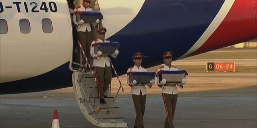 Los féretros de 32 oficiales y soldados de las Fuerzas Armadas Revolucionarias (FAR) de Cuba aterrizaron este jueves en el aeropuerto militar de San Antonio de los Baños, tras perder la vida en los recientes bombardeos y enfrentamientos con fuerzas estadounidenses en Venezuela.