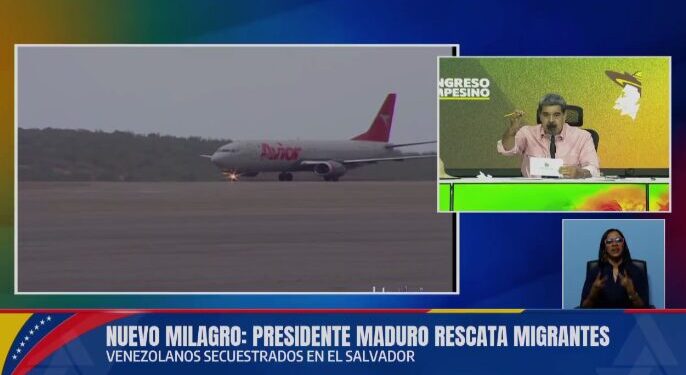 El mandatario Nicolás Maduro, en cadena nacional desde el Poliedro de Caracas, donde se celebra el Congreso Campesino Nacional Fundacional de la Unión Nacional Campesina Ezequiel Zamora, confirmó la llegada de los 252 ciudadanos venezolanos liberados de lo que describió como «campos de concentración y tortura» en El Salvador -El Centro de Confinamiento del Terrorismo, (CECOT)-.