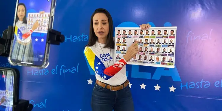 La líder opositora María Corina Machado llamó este lunes a los venezolanos a verificar si fueron seleccionados como miembros de mesa para las elecciones presidenciales del 28 de julio y a conocer cómo está diseñado el tarjetón electoral para «votar bien» por Edmundo González Urrutia.