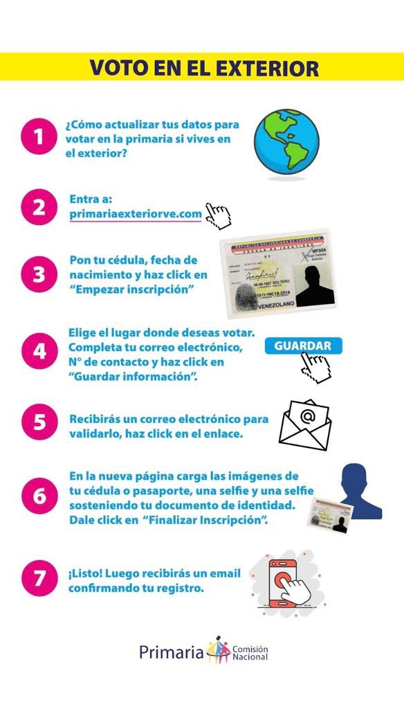 La Comisión Nacional de Primaria (CNdP) informó este jueves que más de 63 mil venezolanos se han inscrito en el exterior para participar en los comicios internos de la oposición que se realizarán el próximo 22 de octubre.