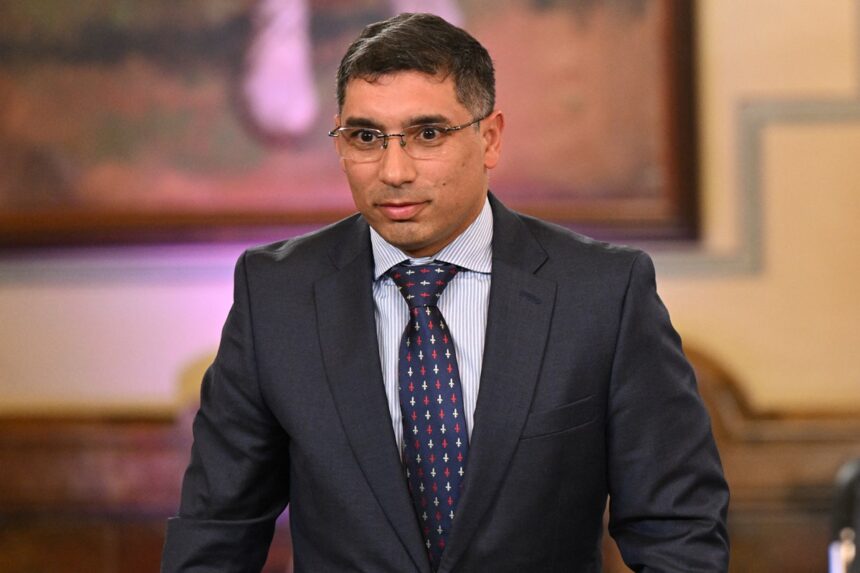 Venezuela's Oil Minister and President of the Venezuelan state oil company PDVSA, Pedro Rafael Tellechea, attends a meeting between Bolivian President Luis Arce and Venezuelan President Nicolas Maduro (out of frame) at the Miraflores presidential palace in Caracas on April 20, 2023. (Photo by Federico PARRA / AFP)