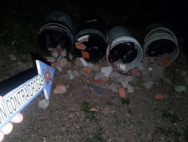 En la vía de tierra se encontraban caminando tres hombres cargando cinco tobos de plástico. Los sujetos al observar al grupo de funcionarios, arrojaron los tobos y huyeron hacia Colombia.