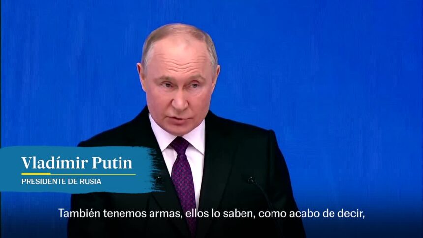 En su intervención, Putin también se jactó de las sofisticadas armas que posee Rusia -como aviones hipersónicos y submarinos no tripulados- y dijo que las fuerzas nucleares estratégicas de Rusia se encuentran en un estado de “plena preparación».