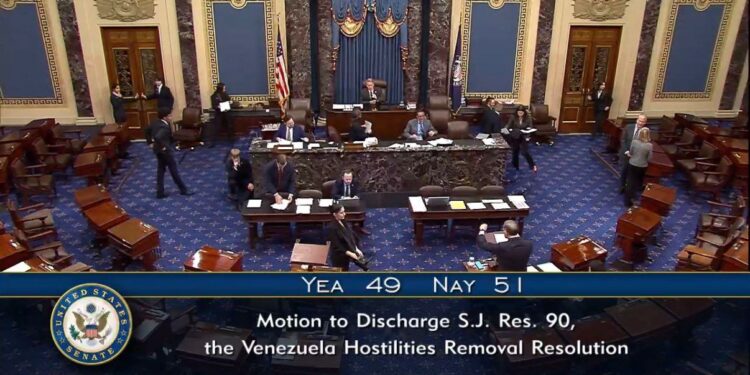 Senado de Estados Unidos rechaza resolución demócrata que buscaba prohibir ataques militares en Venezuela sin autorización del Congreso