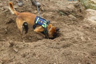 En el operativo de recuperación de desaparecidos en Tejerías, estado Aragua participan perros rastreadores, que olfatean en búsqueda…
