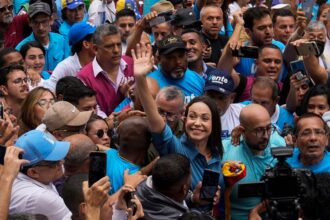 La dirigente María Corina Machado, candidata a la elección primaria promovida por la oposición venezolana de cara a…