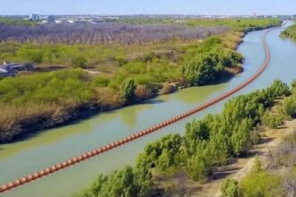 Una línea de boyas formará una barrera flotante en el sector del Río Grande que limita con la…