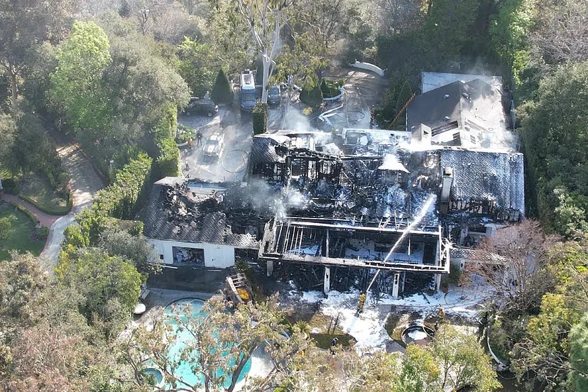Los bomberos indicaron que el incendio consumió una habitación en la parte trasera de la casa, una lujosa mansión de 600 metros cuadrados, se convirtió en un fuego voraz en el ático y derrumbó el tejado de la propiedad.